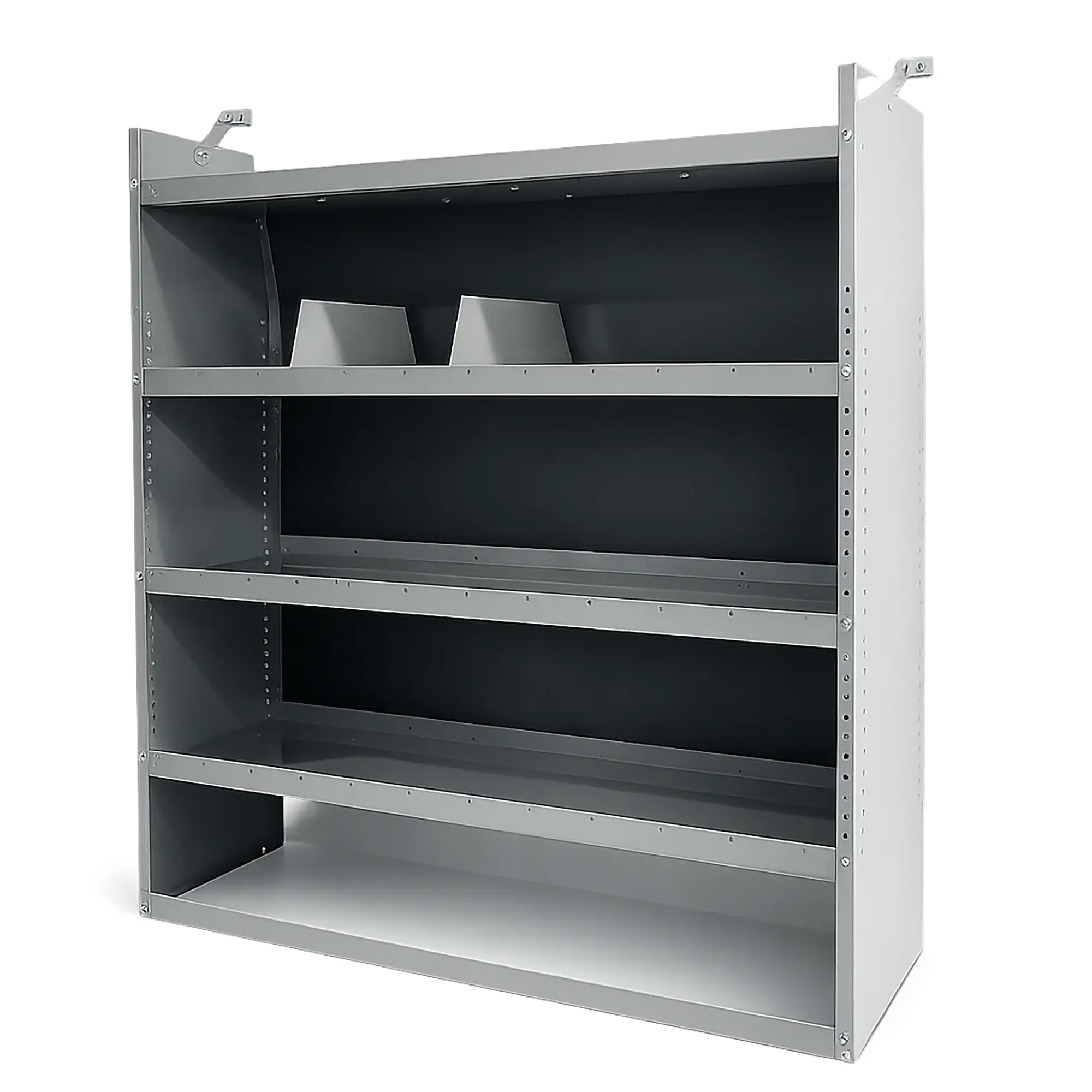 This shelving unit is precision-contoured to match the interior dimensions of full-size Ford Transit vans, ensuring: